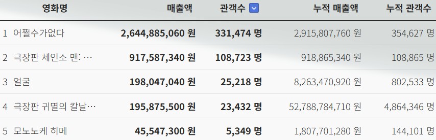 Weekly Box office ๐ฟ - 9์ 24์ผ(์)