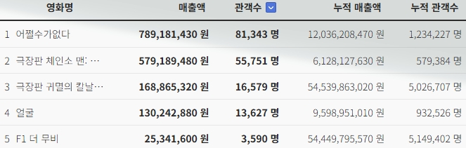 Weekly Box office ๐ฟ - 9์ 30์ผ(ํ)