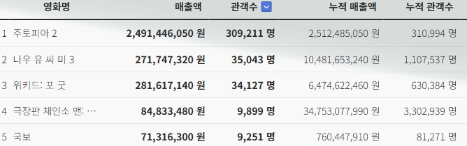 Weekly Box office ๐ฟ - 11์ 26์ผ(์)