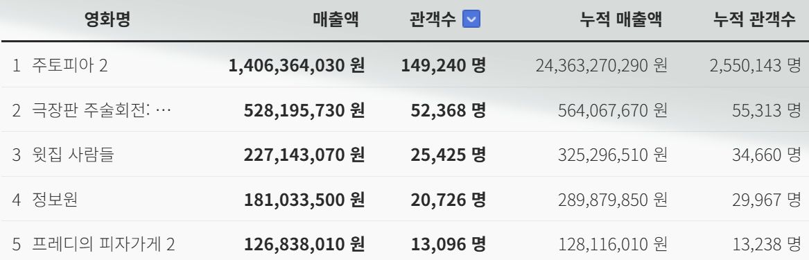 Weekly Box office ๐ฟ - 12์ 3์ผ(์)