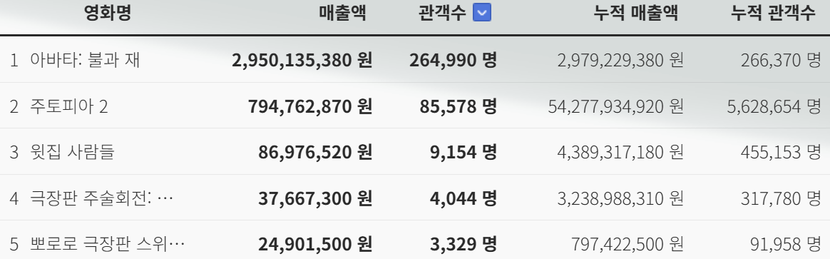 Weekly Box office ๐ฟ - 12์ 17์ผ(์)